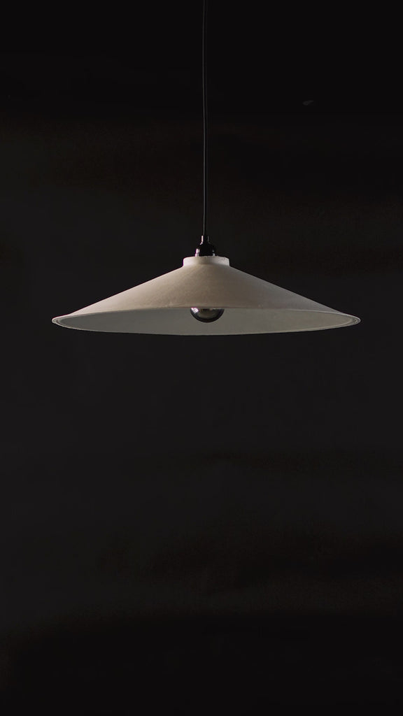 A conic lampshade made from recycled newspaper pulp. Its sculptural form and textured surface create warm, diffused light, combining sustainability with timeless design for modern, conscious interiors.